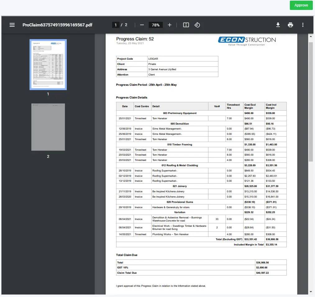 We have the perfect ability through our tracking and means of managing incoming costs from Xero. Additionally, our ability to track labour to defined tasks provides our users with the ability to create quickly and accurately progress claims in minutes not hours. We have many of our users confidently tendering for cost-plus contract work due to the ease in the contract administration, thanks to the contract administration software from PX360.