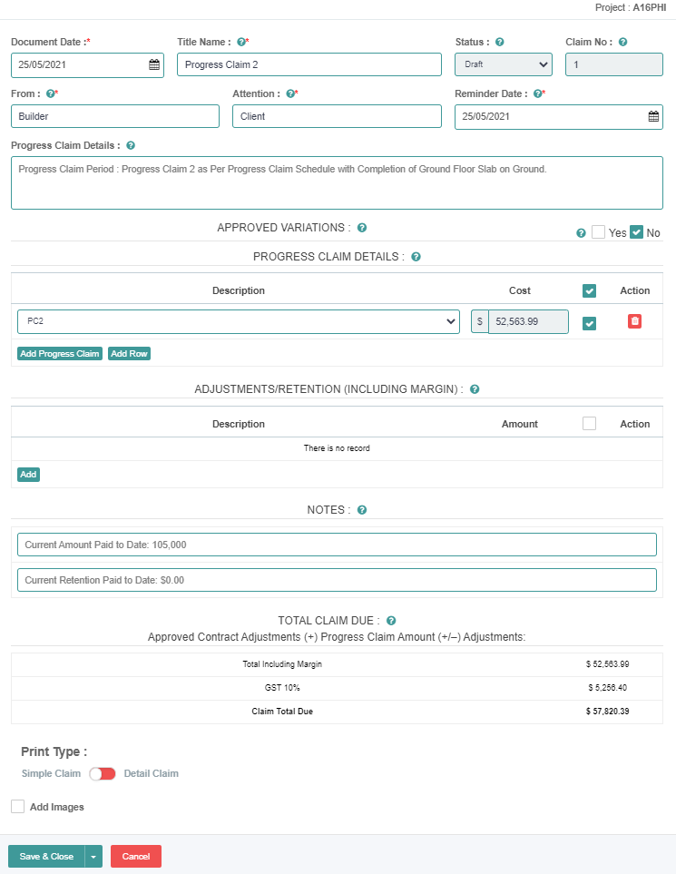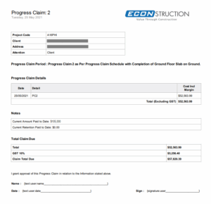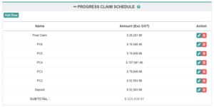 OR - Pre enter through our Project Setup Wizard . This uses a pre-defined progress claim schedule. You can use the progress claim button to select and complete an online template.