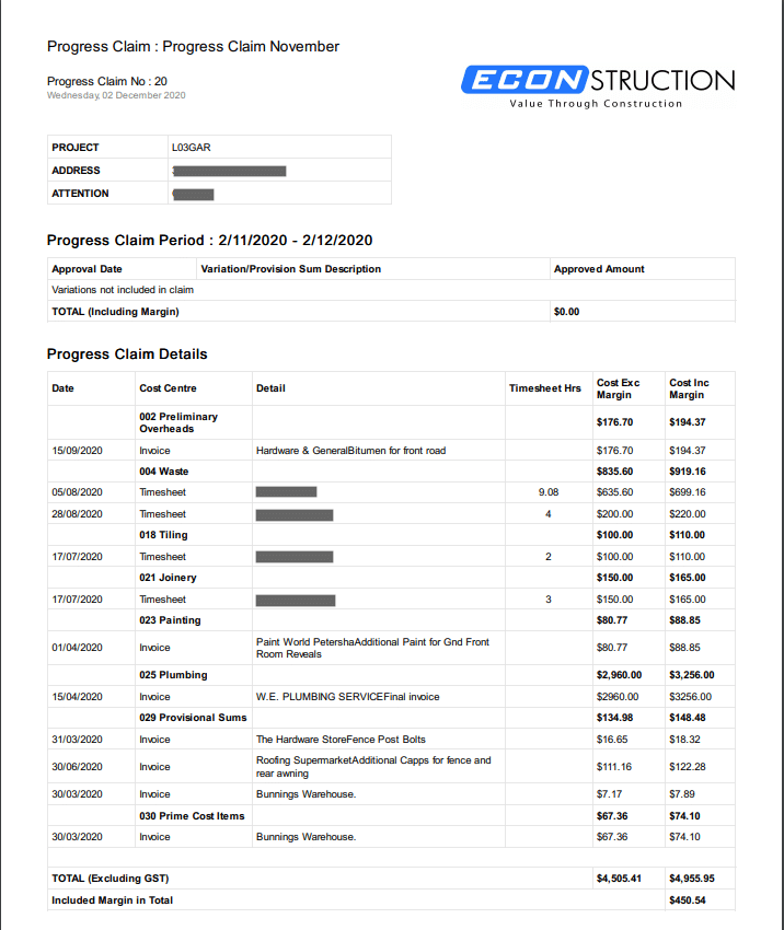 - Click the Progress Claim Button